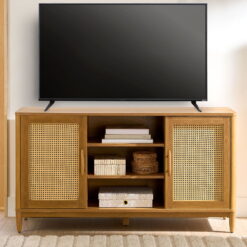 Better Homes & Gardens Springwood Cane TV Stand for TV’s up to 65″, Light Honey Finish
