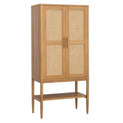 - Doors feature decorative rattan insert