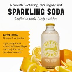 Betty Buzz Meyer Lemon Club Soda, Premium Sparkling Soda by Blake Lively (12 pack) | Natural Flavors & Sweeteners, Only Clean Ingredients