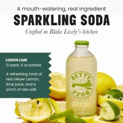 - Blake’s Homemade Recipes – Betty Buzz Sparkling Lemon Lime is made with real Meyer Lemon juice, a twist of lime juice, a pinch of sea salt, agave syrup, and zero artificial colors or sweeteners. Every sip of our premium sparkling soda has just the right amount of tiny bubbles for a unique, refreshing mouthfeel. 30 calories per 9oz bottle.