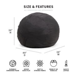 Looking like a blast from the past, the Fuf Large Shredded Foam Beanbag Chair from Big Joe resembles the one you recall from yesteryear but is designed specifically with comfort in mind.Perfectly proportioned as a large-sized, comfortable chair, this beanbag is the ideal accessory for bedrooms, living rooms, or dens as a cozy seat to play video games, watch television or read from. Weighing 33 pounds and featuring durable handles, this chair can easily be carried from room to room, to be enjoyed wherever you want. This beanbag is filled with the right amount of patented shredded foam so it feels full and super comfy.The chair features a soft and durable cover that is both removable and machine-washable. Simply brush off loose dirt, then launder it with mild detergent on the gentle cycle, and allow it to air dry. A paperclip-operated safety zipper keeps the cover secure. If the chair becomes lumpy or flat, give it a toss and a shake to restore it back to its former glory. Refills of foam are never needed.Both retro and modern, cozy and durable, Big Joe’s Fuf Bean Bag Chair is a fun accessory for any home.