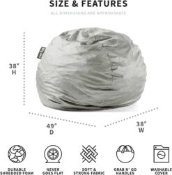 Big Joe Fuf Large Foam Filled Bean Bag Chair with Removable Cover, Fog Lenox, Durable Woven Polyester, 4 feet Big