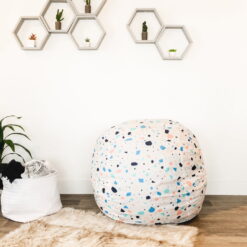 - Covered in soft, durable fabric in an on-trend terrazzo pattern