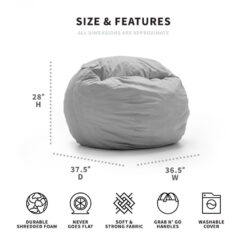 Big Joe Fuf Medium Bean Bag Chair, Lenox 3ft, Fog