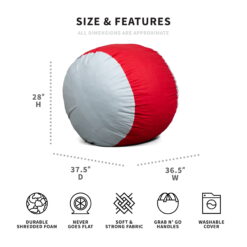 Big Joe Fuf Medium Foam Filled Bean Bag Chair, Kids and Teens, Scarlet/Grey Lenox, 3ft Big