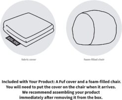 Big Joe Fuf XL Foam Filled Bean Bag Chair with Removable Cover, Fog Lenox, Durable Woven Polyester, 5 feet Giant