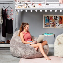 Looking for a chair that will make a big statement? Measuring in at 40″ W x 39.5″ D x 34″ H, the Big Joe Teardrop is a large shape for spaces that need absurdly awesome comfort! You’ll love the unique design and shape of this chair with a perfect blend of back support and coziness thanks to the super-soft shag faux fur. Fun for teens and adults! It’s the perfect luxurious addition to bedrooms, dens, dorms, rec rooms, and living rooms. It’s filled with a scientifically identified amount of bean filling so when you sit on it, it’s super comfy! And, bean refill bags are sold separately so you can give it a pick-me-up whenever needed, since all well-loved bean bags compress over time. For child safety and durability reasons, we intentionally break off the outside zipper pull before shipment. If you need to open your bag, simply use a paperclip to pull it open. Detailed instructions can be found on the warning label attached to your Big Joe. The cover is not removable, but may be spot cleaned as needed.