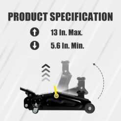 - Features a 1.5 ton (3,000 lbs) capacity with a minimum lifting height of 5-3/5″ and a maximum height of 13″; Ideal for most cars, not recommended for SUVs and trucks