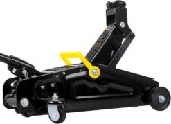 The Torin BIG RED AT820014SB hydraulic trolley floor black jack is constructed with heavy duty steel, providing long term durability with an industrial luster. This floor jack has a 1.5 ton (3,000 lbs) capacity and features a minimum lifting height of 5-3/5″ and a maximum height of 13″, which is ideal for most cars, trucks, and SUVs. A safety bypass system prevents over-loading and ensures safe operation. Equipped with (2) large steel casters and (2) 360-degree swivel casters for smooth maneuverability. The Torin BIG RED AT820014SB hydraulic trolley floor black jack is equipped with a handle for quick portability. It includes a plastic blow mold carrying case for easy storage when not in use. IMPORTANT: Before first use on any lift, verify that a daily inspection has been completed and that all components are in the proper working order.