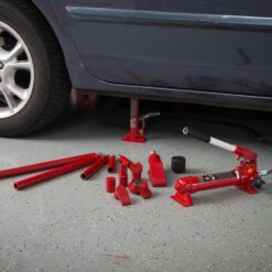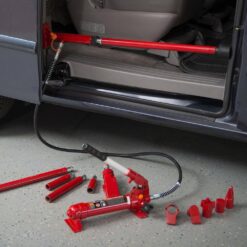 - Complete kit includes a variety of auto body, frame repair and construction components for lifting, pushing, bending and spreading