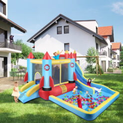 🌈INFLATABLE BOUNCE HOUSE FOR KIDS:Number of kids: 3-8. Perfect for jumping and playing, the inflatable bouncy house castle is a great play gym and the unique Rocket design& Bright color shapes can attract young kids to play for hours and enjoy family fun.