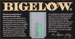Bigelow Earl Grey Black Tea Bags, 20-Count Box (Pack of 6) Caffeinated Black Tea, 120 Tea Bags Total: For our special Earl Grey, we’re adamant about using only the best bergamot oil. We source ours from the same garden in Calabria, Italy year after year. Then we carefully blend this flavorful and aromatic bergamot with a bold handpicked black tea… a recipe like no other.
