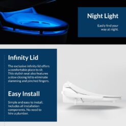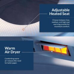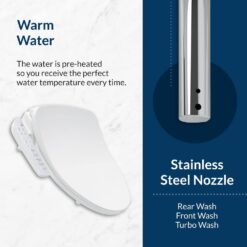 | Features | Adjustable Aerated Wash Spray, Adjustable Nozzle, Adjustable Sprayer Settings, Adjustable Water Pressure, Feminine Wash, Heated, Lighted, Nozzle Sterilization, Posterior Wash, Side Control Operated, Soft Close, Stainless Steel Nozzle, Warm Water Wash | Included | Complete Kit, Hinge, Mounting Kit, Supply Lines |