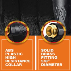 - RUBBER COLLARS – the ends of the hose is surrounded by an ABS plastic high resistance collar with an ergonomic design so you can attach to your water spout and nozzle with ease