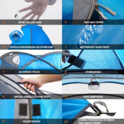 - 【Breathable & Stable】: Large section of mesh and 2 D-shaped doors with dual zippers provide much better ventilation. Equipped with 8 lightweight Alloy Pegs and 2 Wind ropes, the tent has a high resistance of wind.