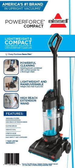 Keep your home spic and span with the BISSELL Power Force Compact Bagless Vacuum. It offers fast and easy cleaning in a lightweight, compact design.