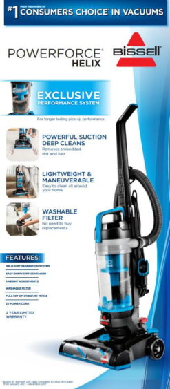 The BISSELL Power Force Helix Bagless Upright Vacuum (new and improved version of 1700), 2191 is a lightweight, yet powerful vacuum that removes embedded dirt and hair from your home.