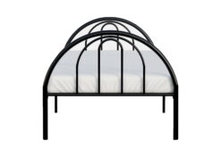 The simple yet stylish lines of the arched head and foot board make the Brooklyn Metal Twin Bed a perfect fit in any bedroom. It’s available in a variety of classy finished colors; Black, White, Blue, Red, Gray, Turquoise, and Pink. This kid’s metal bed can serve as a fashionable backdrop for any designer’s imagination. The solid steel construction of this twin bed makes it a durable choice for your child’s bedroom. The woven mattress support means this steel bed for kids does not require a box spring or Bunkie board. Pair this twin metal bed frame with a mattress and sheets that match your decor to complete the look. This bed is big enough to give a cozy and comfortable night’s sleep to your child. It is designed for use with a child ages 4 years and older. With a durable finish it is easy to clean and maintain. The Brooklyn Metal Twin Bed is a must-have for your child’s bedroom.