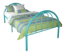 The simple yet stylish lines of the arched head and foot board make the Brooklyn Metal Twin Bed a perfect fit in any bedroom. It’s available in a variety of classy finished colors; Black, White, Blue, Red, Gray, Turquoise, and Pink. This kid’s metal bed can serve as a fashionable backdrop for any designer’s imagination. The solid steel construction of this twin bed makes it a durable choice for your child’s bedroom. The woven mattress support means this steel bed for kids does not require a box spring or Bunkie board. Pair this twin metal bed frame with a mattress and sheets that match your decor to complete the look. This bed is big enough to give a cozy and comfortable night’s sleep to your child. It is designed for use with a child ages 4 years and older. With a durable finish it is easy to clean and maintain. The Brooklyn Metal Twin Bed is a must-have for your child’s bedroom.