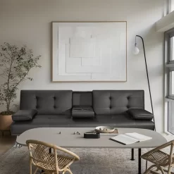 - A fold-down middle armrest with 2 cup holders to enjoy your entertainment time, Sofa Bed