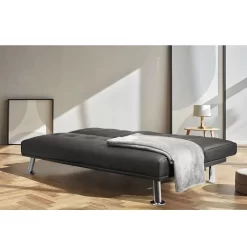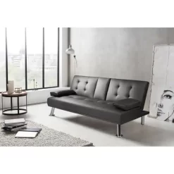 Converts Into A Bed: The futon can easily and quickly converts into a sleeping bed for guest in seconds with a fully reclining backrest and removable armrests. Buying it means you can have a bed while owning a sofa. Multipurpose Futon: The back of sofa with three gears positions to meet different daily needs. The fold-down middle armrest with 2 cup holders allows you and your family to enjoy a beverages while relaxing. Super Comfortable: Crafted from modern smooth faux leather with thick cushions and strong padding, the sofa is super comfortable and breathable. You will have a super relaxing time with your family on our futon sofa. Classic Design: A modern design, the smooth faux leather and 4 chrome-metal legs make this sofa very textured. The simple and stylish sofa is perfect for you who have a great taste of home decorations. Easy To Clean: The smooth faux leather fabric makes cleaning very easier. If you accidentally splashed the juice on the sofa, just wipe it off. The sofa will be dried immediately without leaving traces, Sofa Bed
