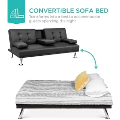 Black 66 in. Faux Leather Upholstered Convertible Folding Futon Sofa Bed 2 Cupholders – Estimated delivery 10-15 days.