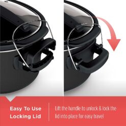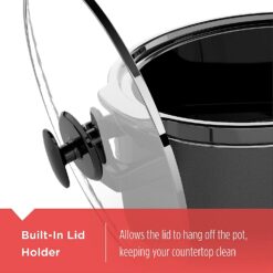 - Built-In Lid Holder – Keep countertops clean and stir & serve without holding the lid! The built-in holder props the lid conveniently on either of the side handles.