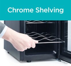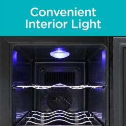 This phenomenal BLACK+DECKER small wine cellar (9.7″ x 19.8″ x 14.9) stores up to 6 bottles of your favorite vino at just the right temperature. Preserve your wine so it will retain its delicious taste and nuanced flavors with our wine cooler (17.6 lbs.) that ranges in temperature from 46° to 65° Fahrenheit. Ideal for your favorite bottles, this thermoelectric cooling wine fridge small is energy efficient with very low vibration. Our digital wine cooler comes with a clear triple pane glass door, 2 chrome full-length racks and convenient interior light. This outstanding small wine fridge also comes with adjustable leveling legs, recessed door handle and is proudly ETL certified.