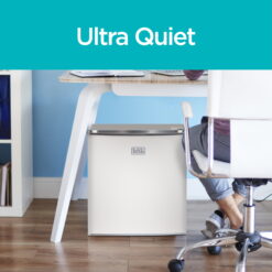 The BLACK+DECKER Energy Star mini fridge has a modern square design that fits – with style – into any indoor living space. This 1.7 cu. ft. compact refrigerator adds convenience to any room for real-life practicality without compromising interior storage space. You’ll be amazed by how much it fits. The free-standing, flat back unit fits easily under counters and desks, or in room corners. This mini fridge with freezer has an adjustable temperature control, removable glass shelf, and a reversible door. Its quiet operation make daily life a lot easier with one small appliance!