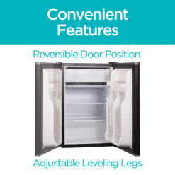- CONVENIENT FEATURES – A reversible door, leveling legs, and adjustable temperature control (32 degrees Fahrenheit at the lowest setting) make this mini fridge even more practical. The small freezer (12.8 inches wide x 4.3 inches tall) fits ice packs, most frozen dinners, and the included ice tray