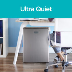 The BLACK+DECKER 2.5 cu. ft. Energy Star mini fridge has a modern square design that fits – with style – into any indoor living space. Adding convenience to any room for real-life practicality, it is perfectly compact without compromising interior storage space. You’ll be amazed by how much it fits. The free-standing, flat back unit fits easily under counters and desks, or in room corners. The adjustable temperature control, can dispenser, removable glass shelves, reversible door, and quiet operation make daily life a lot easier with one small appliance! Similar to a full size fridge, it comes with a full width freezer compartment with ice cube tray and adjustable thermostat control and has a stylish silver exterior.