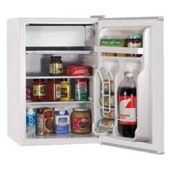 The BLACK+DECKER Energy Star mini fridge has a modern square design that fits – with style – into any indoor living space. Adding convenience to any room for real-life practicality, it is perfectly compact without compromising interior storage space. You’ll be amazed by how much it fits. The free-standing, flat back unit fits easily under counters and desks, or in room corners. The adjustable temperature control, can dispenser, removable glass shelves, reversible door, and quiet operation make daily life a lot easier with one small appliance! Similar to a full size fridge, it comes with a full width freezer compartment with ice cube tray and adjustable thermostat control.