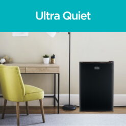 The BLACK+DECKER Energy Star mini fridge has a modern square design that fits – with style – into any indoor living space. Adding convenience to any room for real-life practicality, it is perfectly compact without compromising interior storage space. You’ll be amazed by how much it fits. The free-standing, flat back unit fits easily next to counters and desks, or in room corners. The adjustable temperature control, can dispenser, removable glass shelves, reversible door, and quiet operation make daily life a lot easier with one small appliance!