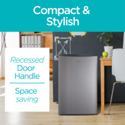 The BLACK+DECKER Energy Star mini fridge has a modern square design that fits – with style – into any indoor living space. Compact refrigerator adds convenience to any room for real-life practicality, it is perfectly compact without compromising interior storage space. With a 4.3 cu. ft. capacity, you’ll be amazed by how much this compact fridge fits. The free-standing, flat back fridge fits easily next to counters and desks, or in room corners. The adjustable temperature control, can dispenser, removable glass shelves, reversible door, vegetable drawer, and quiet operation make daily life a lot easier with one small appliance!