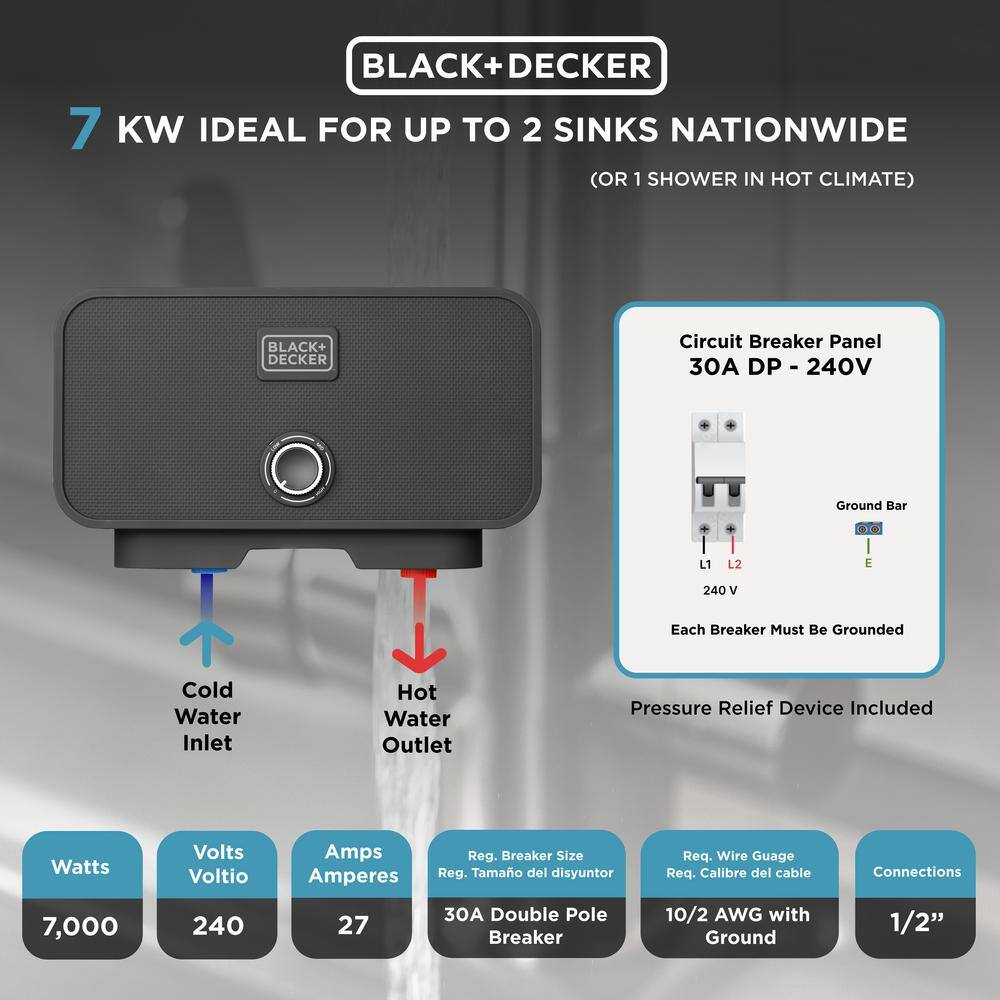 BLACK+DECKER BD-POU-7HD 7 kW/240V 1.4 GPM Electric Tankless Water Heater up to 2 Sinks Nationwide or 1 Shower in Hot Climates