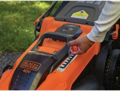 Offering a great combination of versatility and convenience, this BLACK+DECKER 20 in. cordless lawn mower makes it easy to maintain a well-manicured yard. The cordless mower pairs an efficient variable-speed motor with a reliable, removable 40V MAX* lithium ion battery, allowing you to cut up to 1/4 acre on a full charge. Simple to start with the push of a button, it also features a lightweight, 20 in. mower deck for easy maneuverability, 10 in. rear wheels, and a comfortable non-slip grip. Choose from 6 cutting height adjustments between 1-1/2 in. and 4 in. using the single lever; you can also select 3 different mowing modes: mulch, bag, or discharge clippings from the side. Plus, this push mower’s EDGEMAX design can get up close to edges, so you don’t have to go back and clean them up with a trimmer. And when the job’s done, the handle folds easily for upright, compact storage.*Maximum initial battery voltage (measured without workload) is 40 volts; nominal voltage is 36 volts.