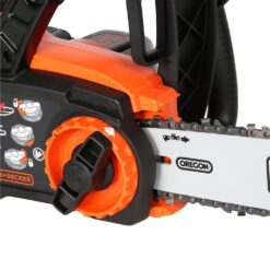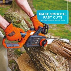 The BLACK+DECKER LCS1240 12 in. Cordless Chainsaw is ideal for many cutting applications around the yard. It includes a 40V Max lithium-ion battery for longer run time and overall life. A 12 in. Oregon low-kickback bar and chain provide smooth and fast cuts. This combo kit includes a 20-Volt charger and a 3-year limited warranty for added peace of mind.