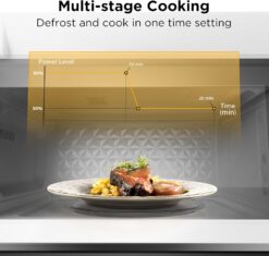 - Multi-stage Cooking: Save time by cooking with 90% microwave power for 10 minutes and then cooking with 50% power for 5 minutes in one time setting.