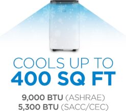- Three-in-One Unit: Our 9000 BTU (5,300 BTU SACC) air conditioner also functions as a dehumidifier & fan. This portable air conditioner has a full function remote control & top mounted control panel with LED display