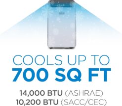 - Three-in-One Unit: Our 14,000 BTU ASHRAE (10,200 BTU SACC) air conditioner also functions as a dehumidifier & fan. This portable air conditioner has a full function remote control & top mounted control panel with LED display