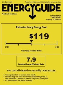 BLACK+DECKER Smart Portable Air Conditioner with Heat, 14,000 BTU (10,200 BTU SACC) Cooling, 12,000 BTU Heating for Rooms up to 700 Sq. Ft., Follow Me Remote, BPACT14HWT, White