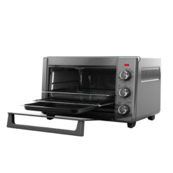 Three control knobs make it easy to set the toast timer, 60-minute timer, and choose from 5 cooking functions: bake, broil, toast, keep warm, and air fry. Convection technology circulates air within the oven for fast and even results when air frying. Plus, this toaster oven includes an air fry basket so you don’t have to flip the food half way through the cycle for an even cook, bake/broil pan and rack, and an external crumb tray that slides in and out to make cleanup a breeze.