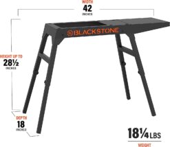Blackstone 17″/22″ leg stand with side shelf is made to fit either the 17″ or 22″ Table Top Griddles. Conveniently portable and easy to break down, take it anywhere you’ve ever wanted to travel with your griddle. Adjustable legs to level your surface on any terrain, or any height. Side shelf can easily be removed or attached making storage small and conveniently.
