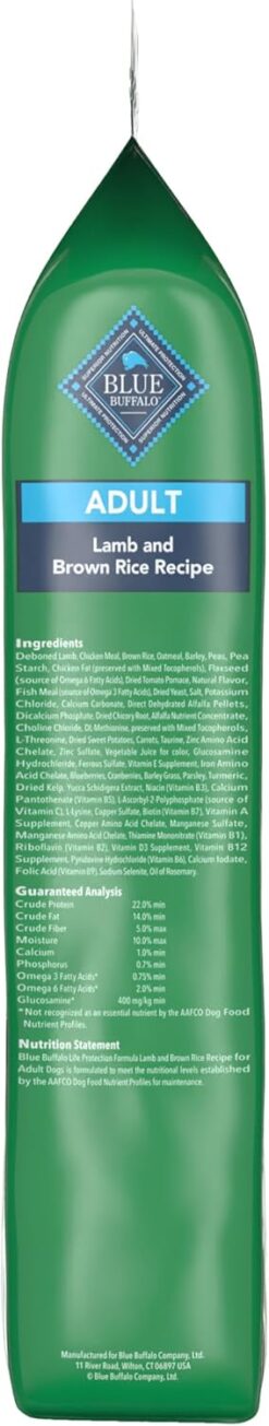- Contains: One (1) 15-lb. bag of BLUE Life Protection Formula Natural Lamb and Brown Rice Flavor