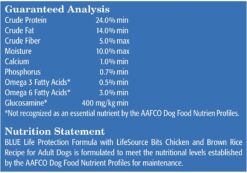 FOR ADULT DOGS: BLUE Life Protection Formula adult dog food contains essential proteins and carbohydrates to help meet the energy needs of adult dogs, and features omega 3 & 6 fatty acids to promote a shiny coat and healthy skin