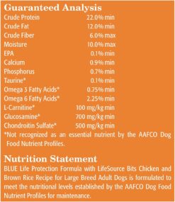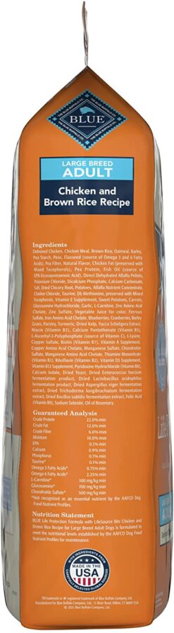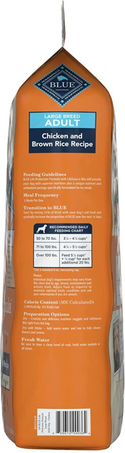 - Contains one (1) 15 lb. Bag of BLUE Life Protection Formula Large Breed Adult Dry Dog Food, Chicken and Brown Rice