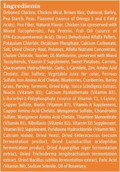 - REAL MEAT FIRST: Blue Buffalo foods always feature real meat as the first ingredient; High-quality protein from real chicken helps your dog build and maintain healthy muscles; Plus they contain wholesome whole grains, garden veggies and fruit