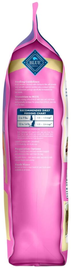 BLUE for Cats dry cat food recipes are made with the finest natural ingredients enhanced with vitamins and minerals. Starting with real meat as the 1st ingredient, they include wholesome grains, veggies and fruit, plus our exclusive, antioxidant-rich LifeSource Bits to support your feline’s overall health and well-being. BLUE for Cats has formulations to meet all of your cat’s life stage and lifestyle needs, from hairball and weight control to sensitive stomach and healthy aging recipes. BLUE for Cats is a product of the Blue Buffalo company. Based in the United States, Blue Buffalo makes premium-quality pet foods.