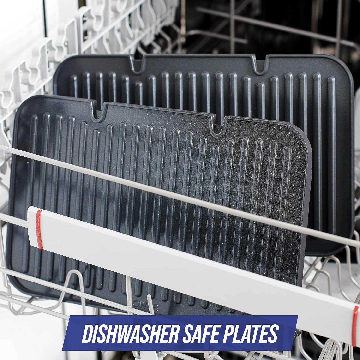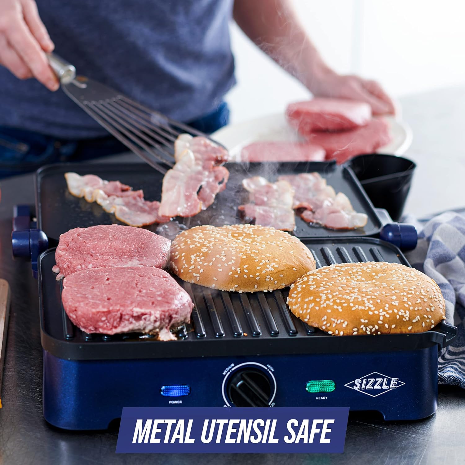Blue Diamond Electric Contact Griddle, Healthy Ceramic Nonstick, PFAS & PFOA-Free, Open Flat Design, Metal Utensil Safe, Drip Tray, Dishwasher Safe Removable Plates, Adjustable Temperature, Blue