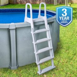 Made from maintenance-free resin, this A-Frame Flip-Up Ladder for above-ground pools has the durability you want, and all the safety features you need. A wide platform and 5-in deep treads ensure safe and secure footing when entering or exiting the pool. The two-piece anti-entrapment barrier ensures that no one swims through, around, or behind the ladder while in the pool. For additional safety and security, the outside ladder swings up and locks in place when the pool is not in use. Supports up to 250-lbs. 3-year limited warranty.